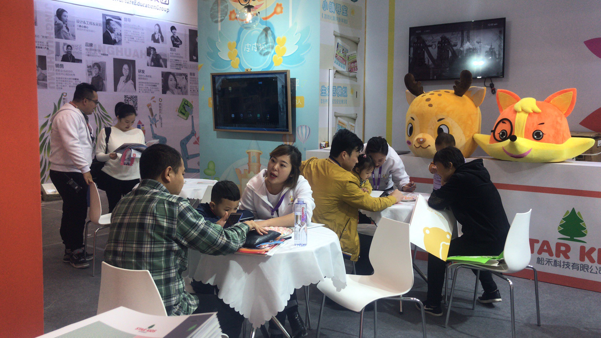 众多一线园长和老师参观松禾展位,并在工作人员的引导下进行了体验,对皮皮狐APP充满兴趣,爱不释手。